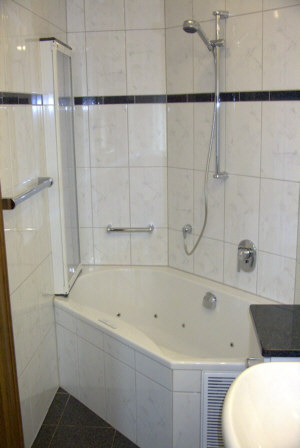 Das Badezimmer ist mit einem Whirlpool, welches für eine wohltuende Entspannung sorgt, ausgestattet.